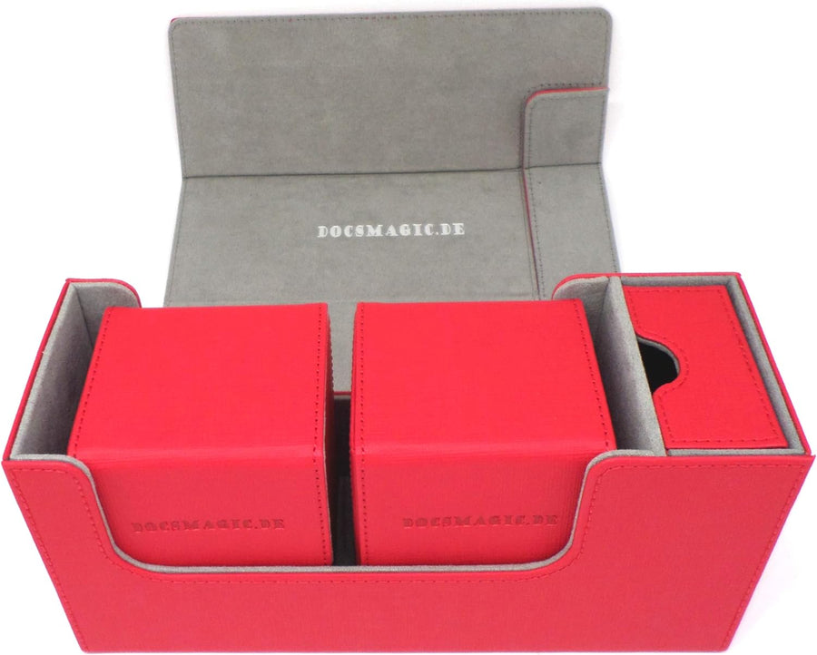 docsmagic.de Premium Magnetic Tray Long Box Red Small + 2 Flip Boxes - Rot Small + 2 Flip Boxes Rot,