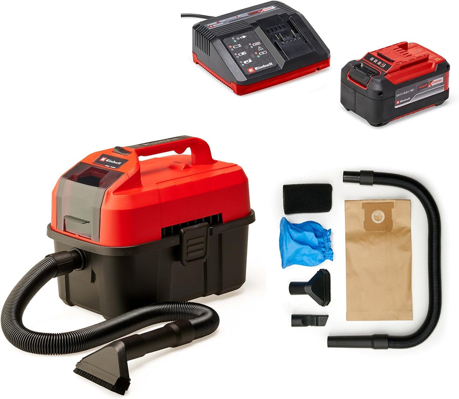 Einhell Akku-Nass-Trockensauger TE-VC 18/10 Li Power X-Change (10 Liter Tank, inkl. 2 m-Schlauch, Fu