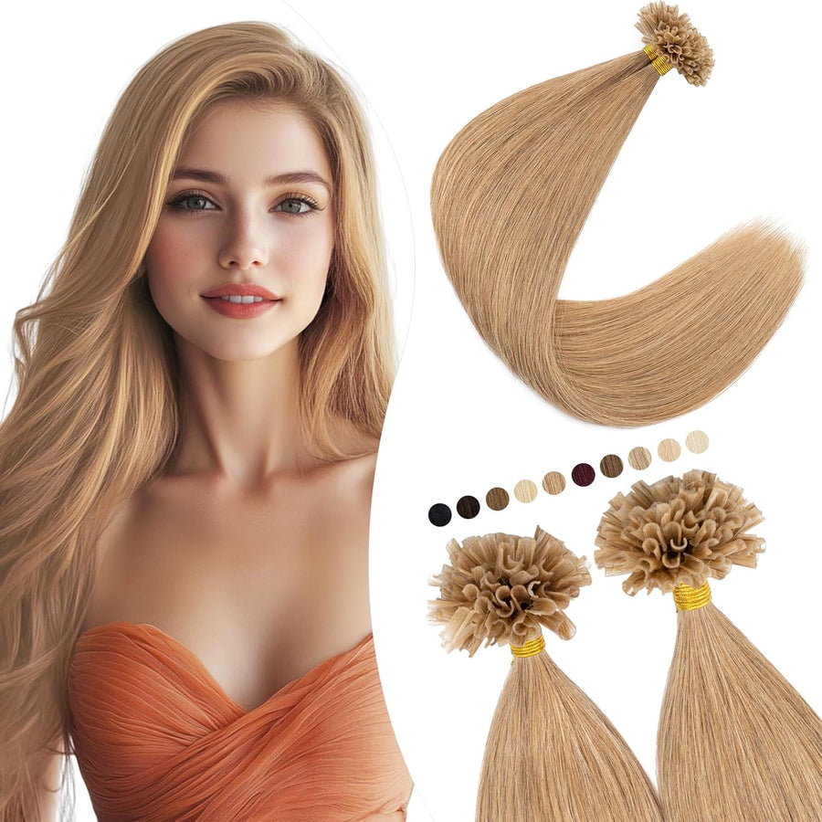 Elailite U-Tip Echthaar Bonding Extensions Keratin Haarverlängerung Haar Glatt 20''(50 cm) #4P27 Mit