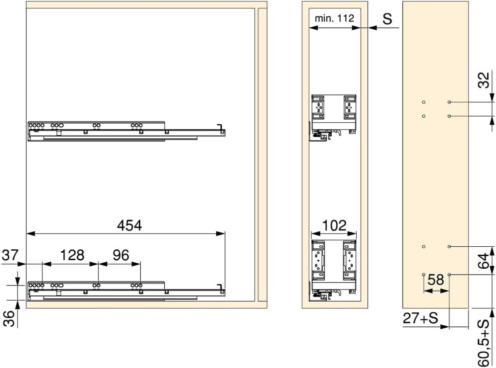 Emuca - Schubladen-Kit für Küche und Bad, H. 178 mm, T. 350 mm, 40 Kg, sanftes Schliessen, Panels ni