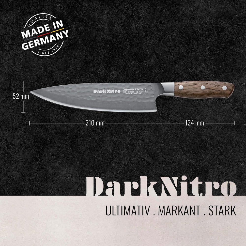 F. DICK Kochmesser DarkNitro 21 cm - geschmiedet, rostfrei, Klinge extra scharf, 61 HRC, Chefmesser