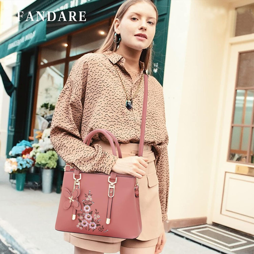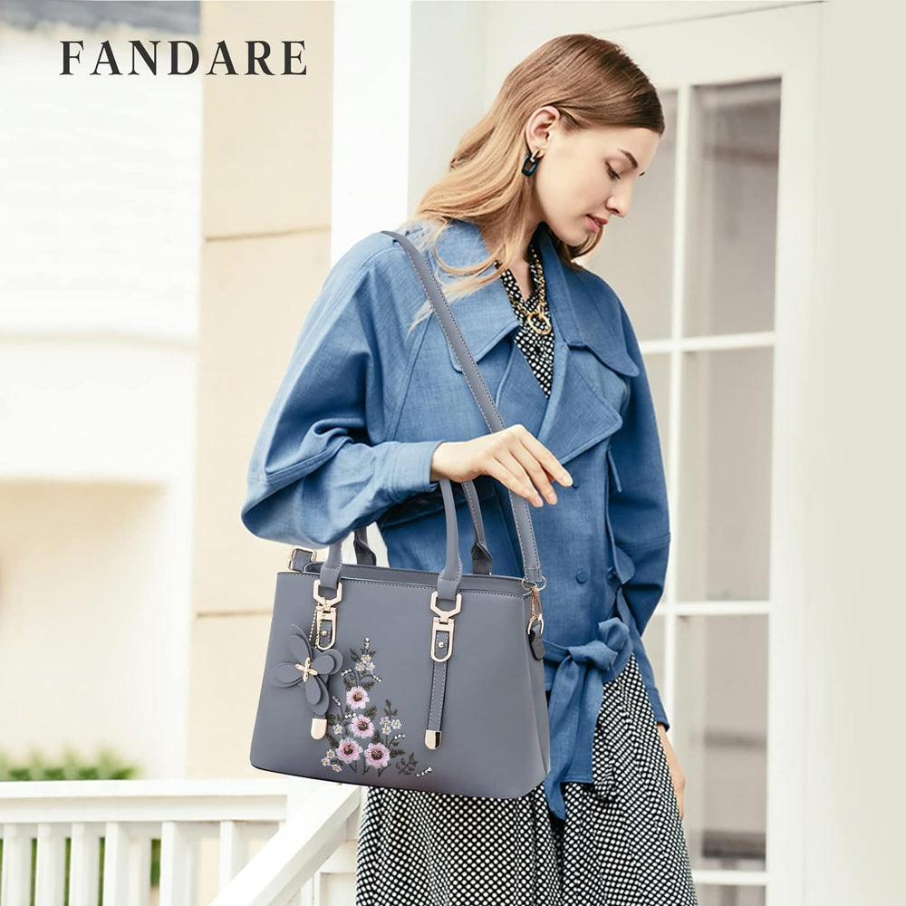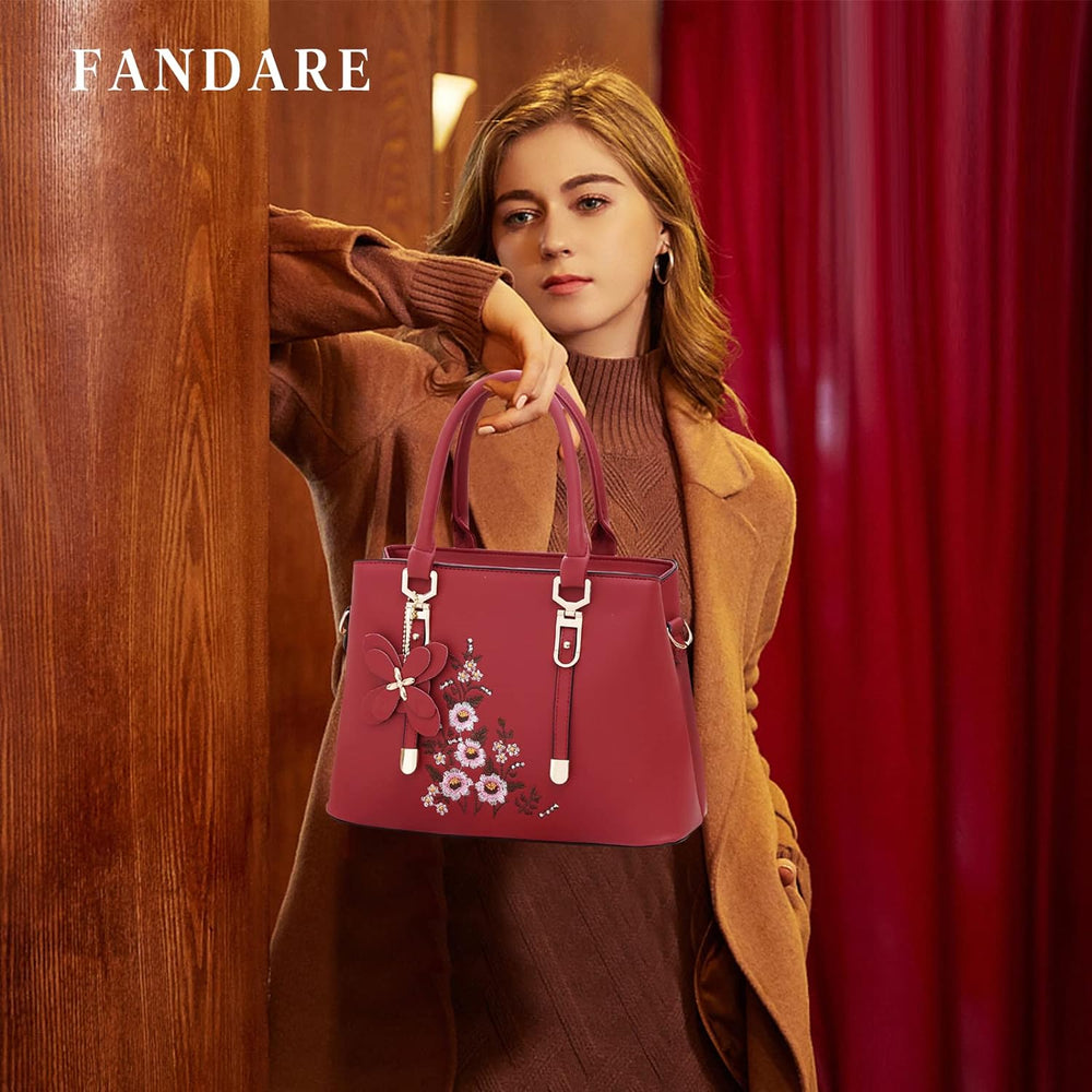 FANDARE Damen Henkeltaschen Wasserdicht Tote Beutel Umhängetaschen Schultertasche PU-Leder Bestickte