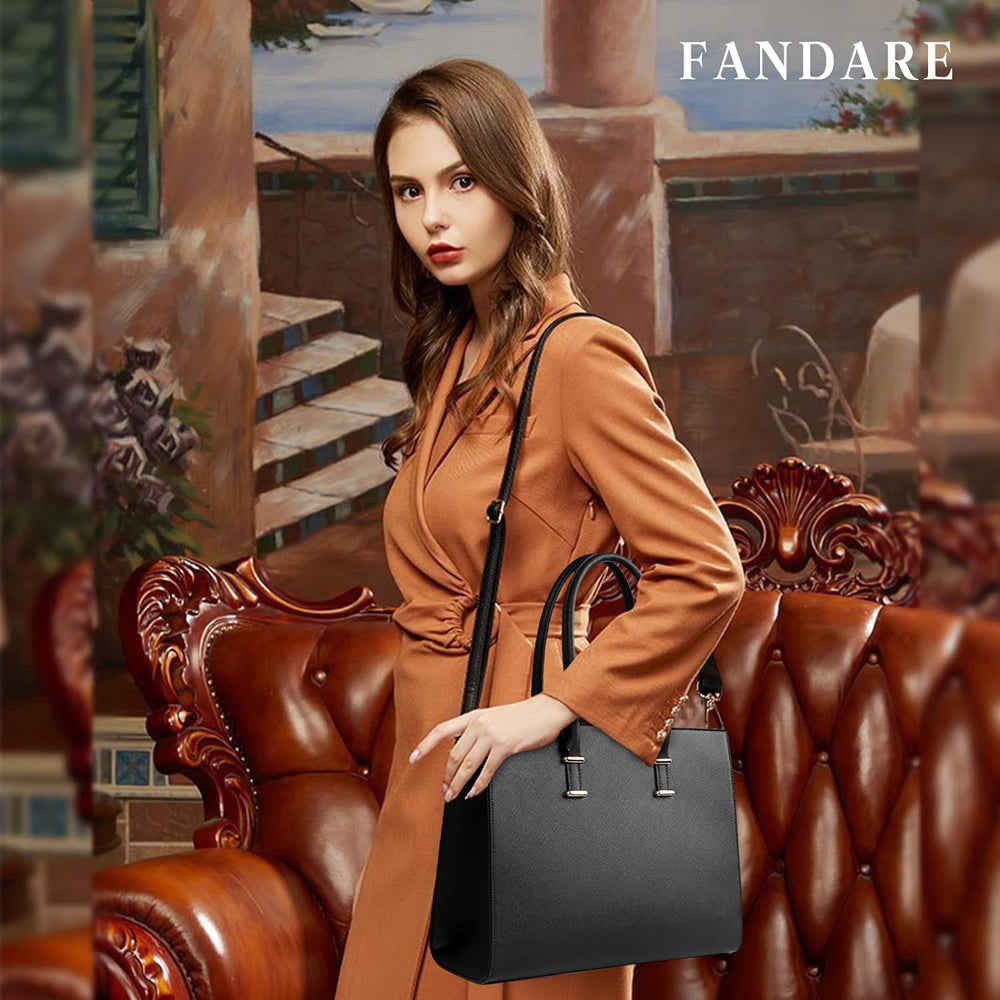 FANDARE Damen Laptoptasche Handtasche Tote Beutel Wasserdicht Umhängetaschen Schultertasche PU-Leder