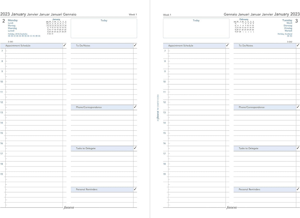Filofax Terminplaner 2023, DIN A4, 5 Sprachen, Terminplaner, 1 Tag pro Seite, White, 23-68719 Single