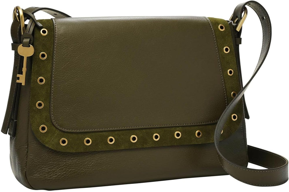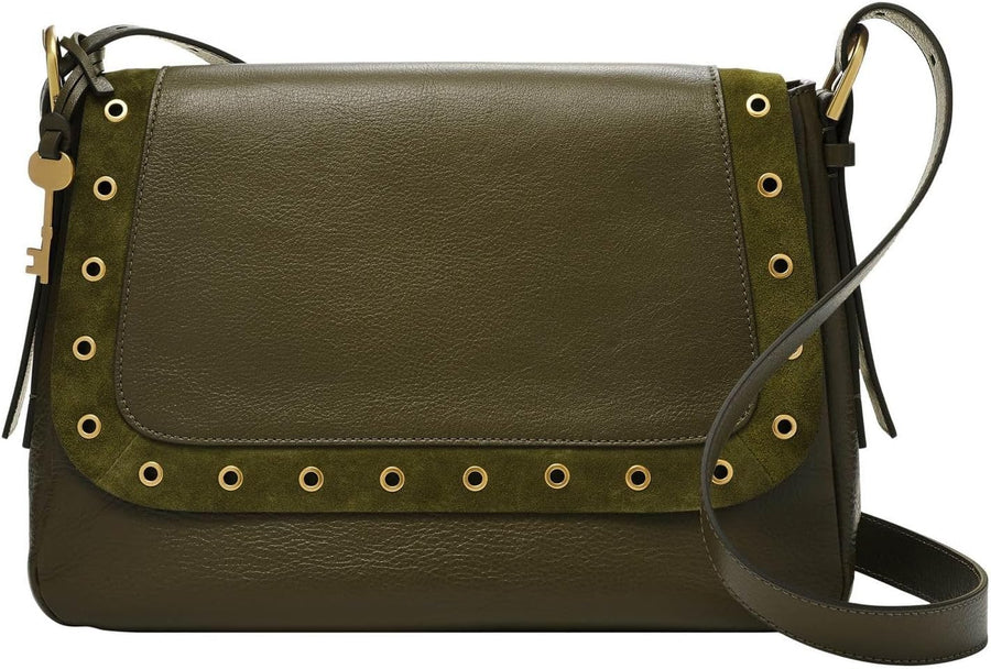 Fossil Tasche für Frauen Harper, Eco Leder/PVC, Wildlederbesatz Klappe Crossbody grün Moos 31.75cm L