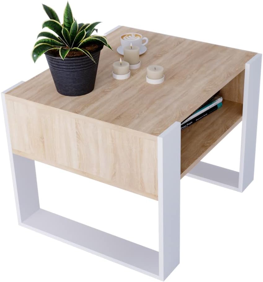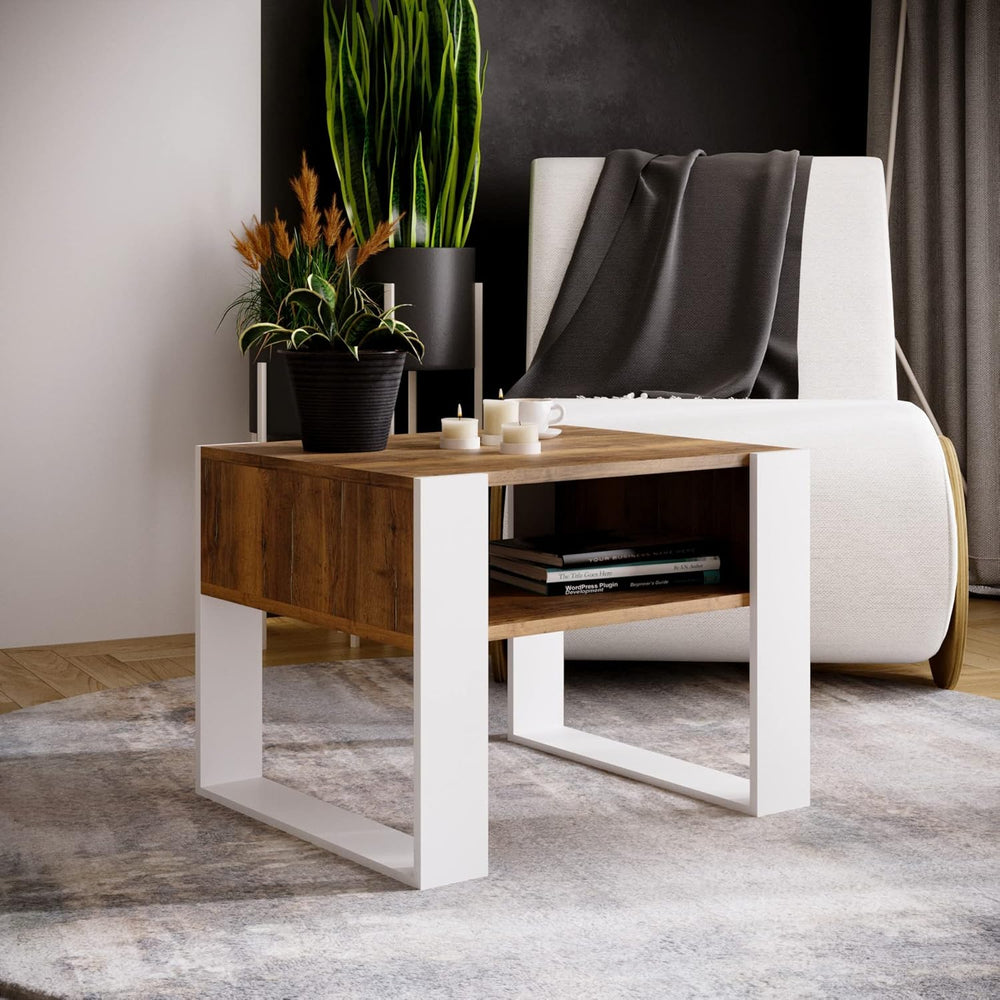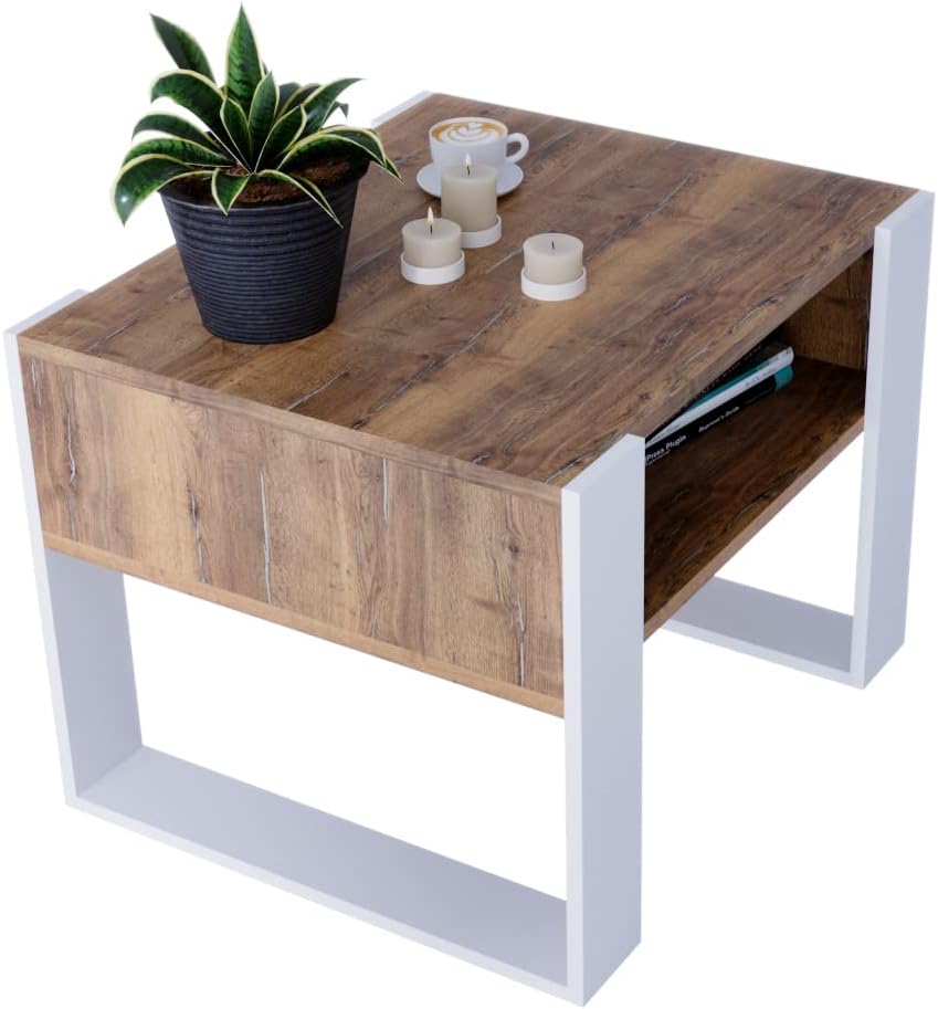 Couchtisch KAJA 63 rechteckiger Kaffeetisch aus Holz Modern Teetisch 63 x 54 x 44cm massiv und stabi