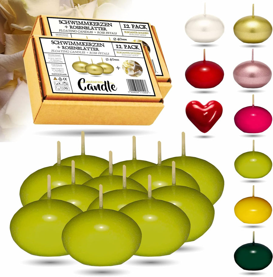 CANDLE HARMONY© Schwimmkerzen 24 STK Ø 40 mm mit GRATIS Rosenblätter Festliche Farben Schwimmkerze Z
