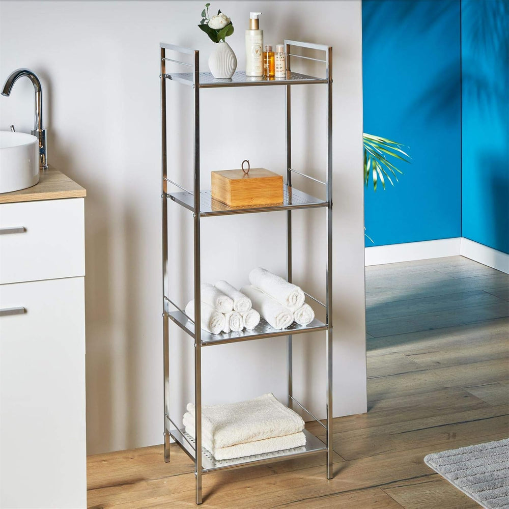 Regal Badregal Metallregal Mehrzweckregal MATIS, verchromt, mit 4 Böden 4 Chrom, 4 Chrom