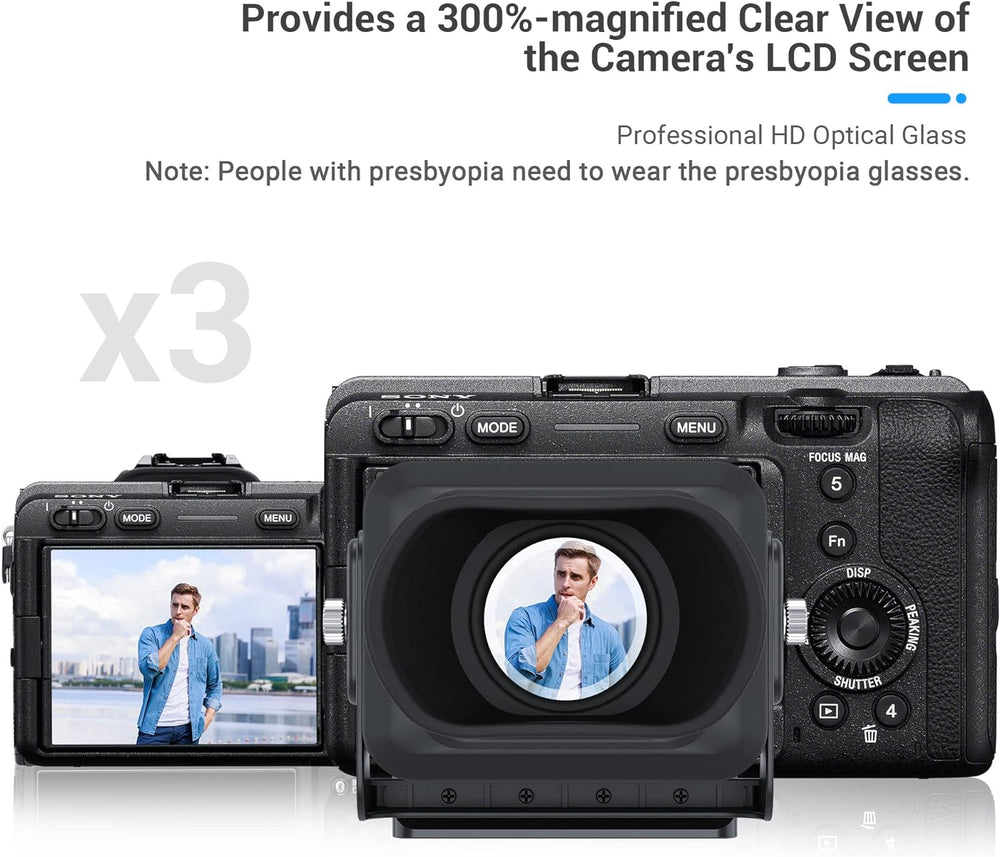 JJC Kamera LCD Sucher Haube mit Grundplatte-Kit für Sony FX30 FX3 Kameras, 3-fache Vergrösserung Ver
