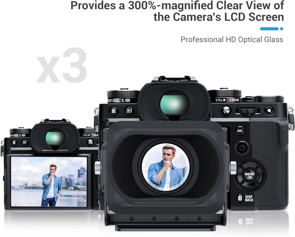 JJC Kamera LCD Sucher, 3X Vergrösserung Kamera Bildschirm Sucher mit Arca-Type Quick Release Platte,