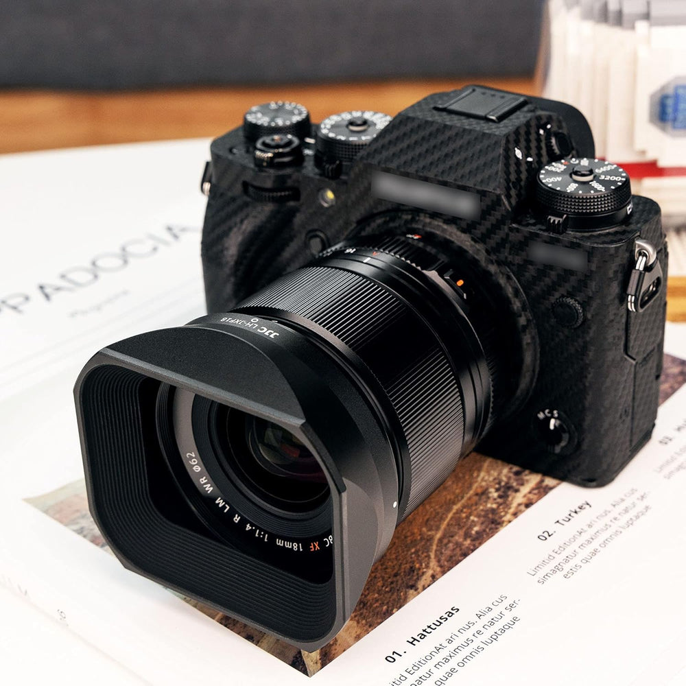 JJC LH-XF18 Gegenlichtblende und Objektivdeckel für Fujifilm XF 18 mm f/1.4 R LM WR Objektiv auf Fuj