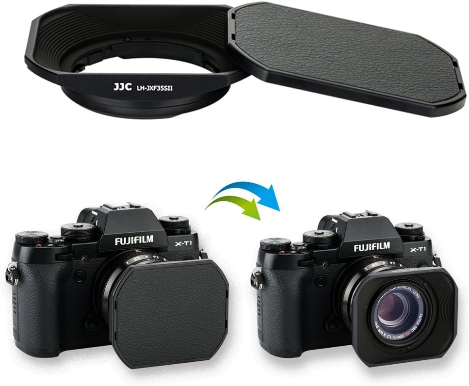 JJC LH-JXF35SII Gegenlichtblende aus schwarzem Metall, quadratisch, Bajonett-Gegenlichtblende für Fu