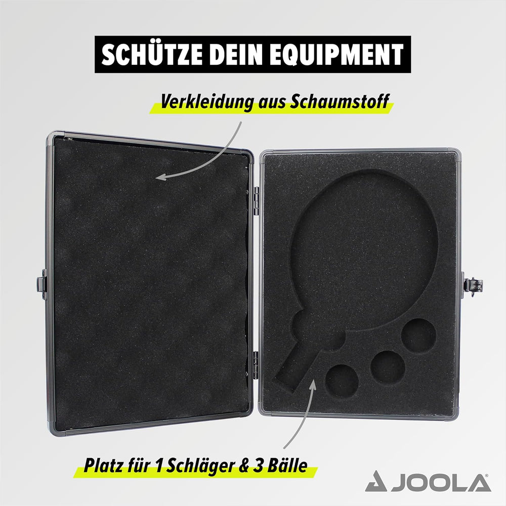 JOOLA Tischtennishülle Schlägerkoffer BAT CASE Alukoffer passend für 1 Tischtennisschläger und 3 Tis