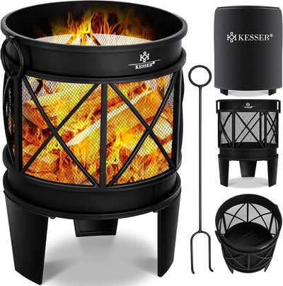 KESSER® Feuerschale mit Grillrost Ø65cm Feuerkorb 0,6mm Kaltveredelter Stahl | Mobile Feuertonne mit