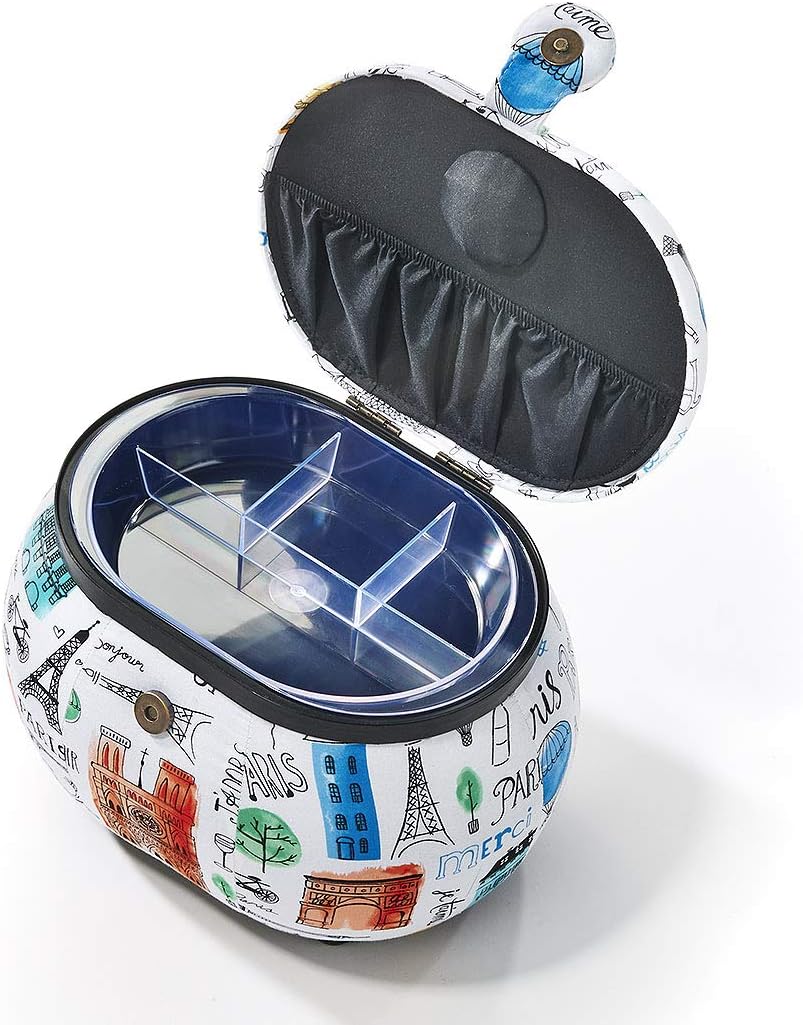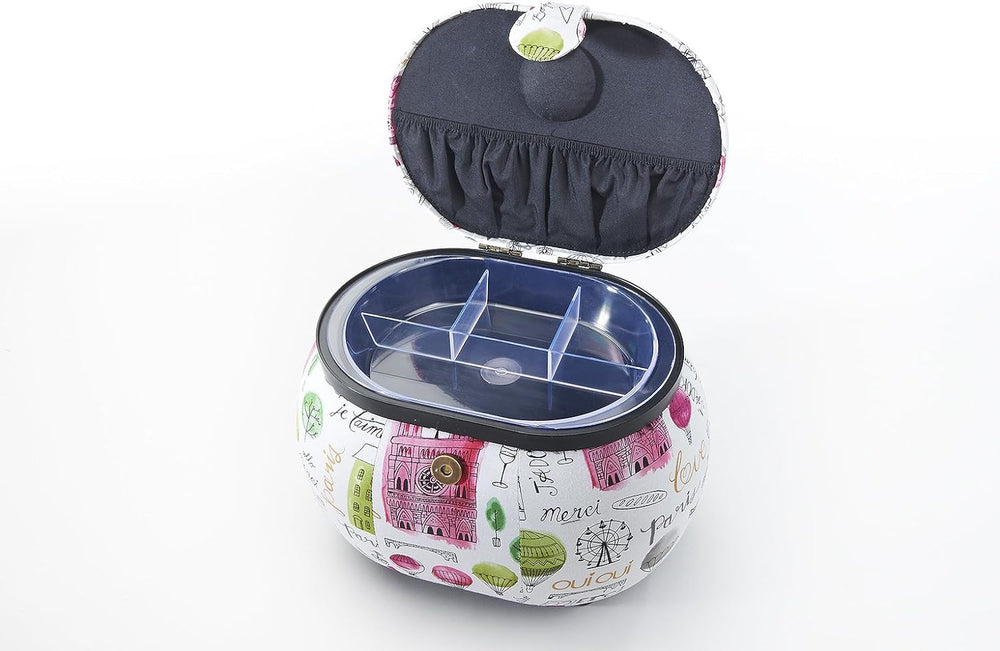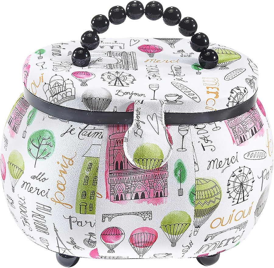 Kobolo Nähkästchen Nähkorb Nähkörbchen Nähkasten - beige schwarz - 26x20x18 cm Paris, Paris
