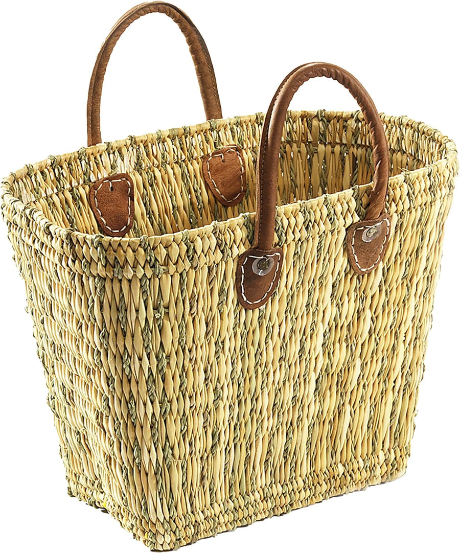 Kobolo Korbtasche Einkaufstasche Flechttasche Strandtasche Seegrastasche natur Ledergriffe