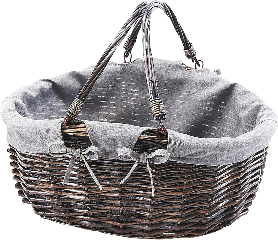Kobolo Klappbügelkorb Weidenkorb Einkaufskorb mit Klapphenkeln und Textilfutter in grau aus Weide