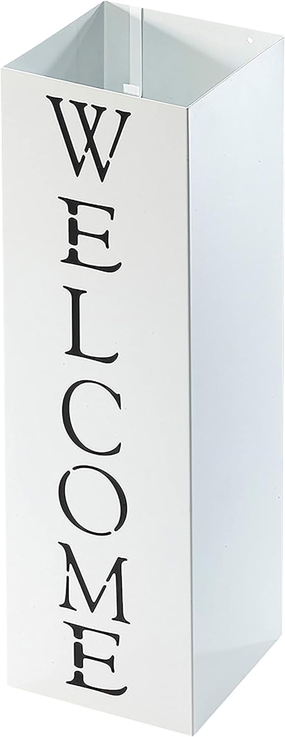 Kobolo Moderner Schirmständer Welcome aus weiss lackiertem Metall