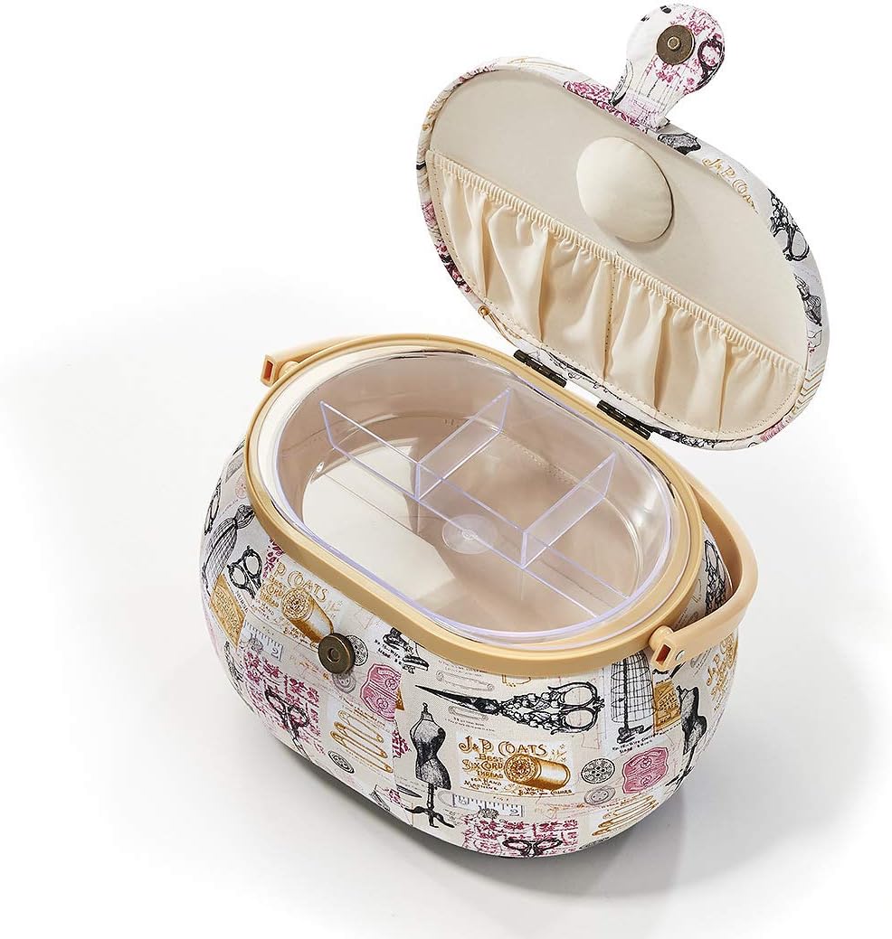 Kobolo Nähkästchen Nähkorb Nähkörbchen Nähkasten -Kunststoff, Textil- Weiss, Bunt - 28x21x19 cm