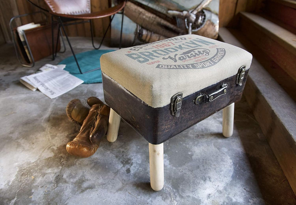 Kobolo Kofferhocker Hocker Polsterhocker - Leinen und Kunstleder - Braun - 50x36x45