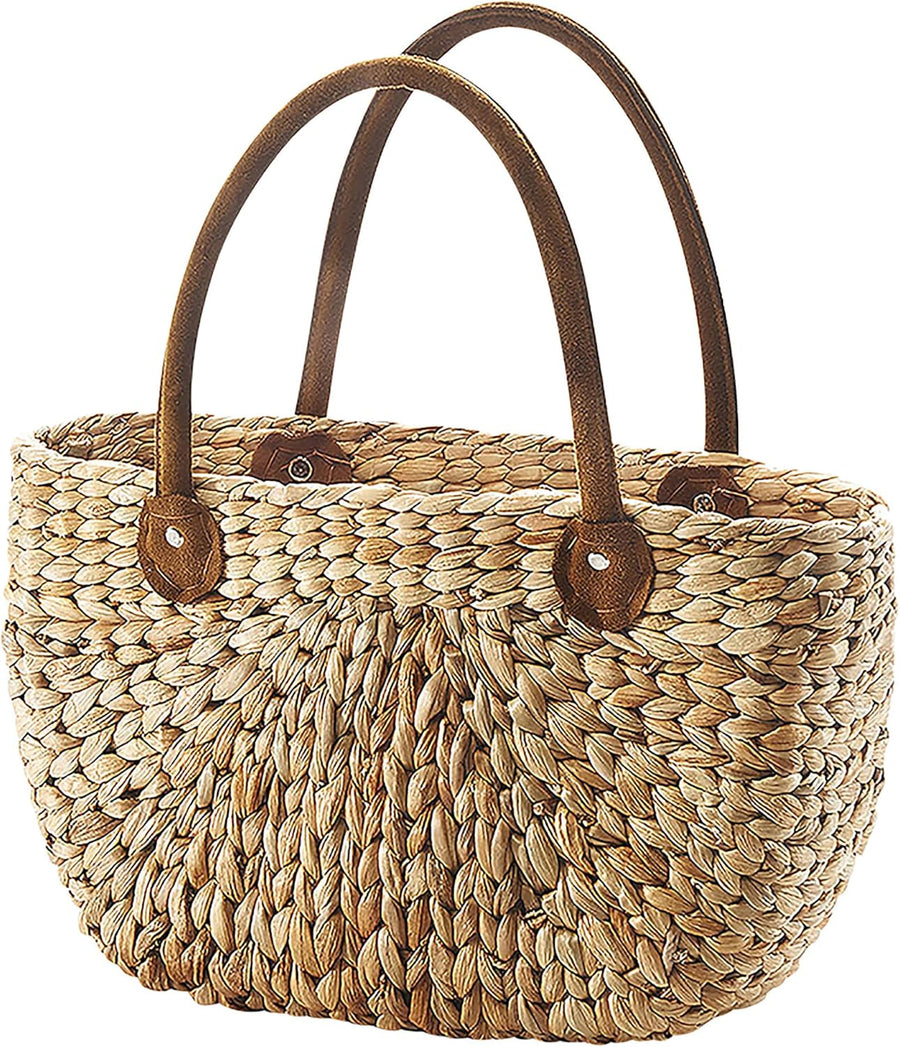 Kobolo Korbtasche Einkaufstasche Flechttasche aus Wasserhyazinthe Natur mit Ledergriffen klein