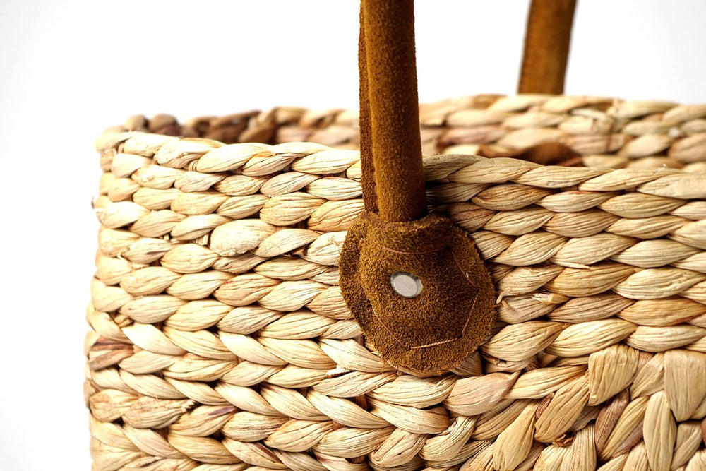 Kobolo Korbtasche Einkaufstasche Flechttasche aus Wasserhyazinthe Natur mit Ledergriffen gross
