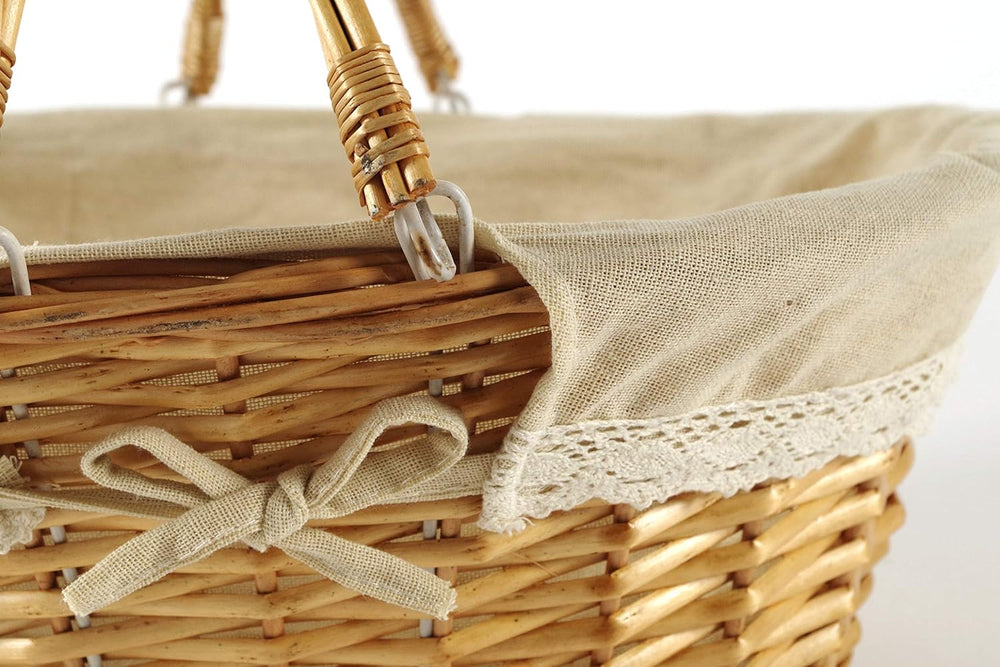 Kobolo Klappbügelkorb - Weidenkorb mit Klapphenkeln und Textilfutter