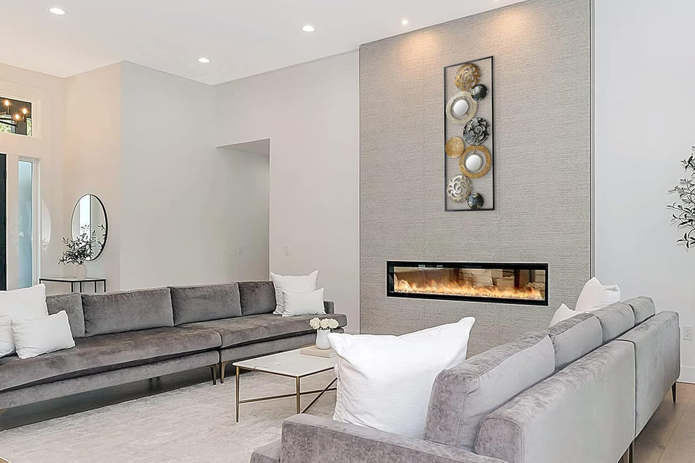 Kobolo Metall-Wandbild Wanddeko Metallbild - mit Ringen, Kreisen und Spiegeln - 90x31 cm