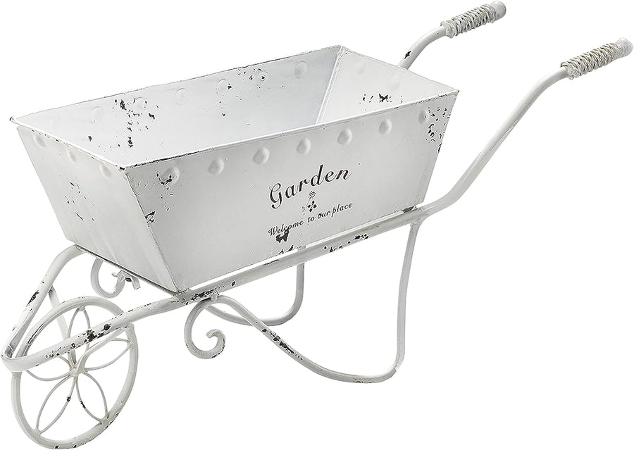 Kobolo Pflanzschubkarre Pflanzwagen - Shabby chic Vintage Stil - weiss - rechteckig - Innnenbereich