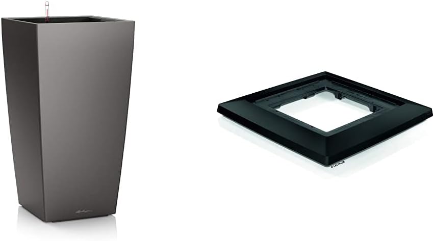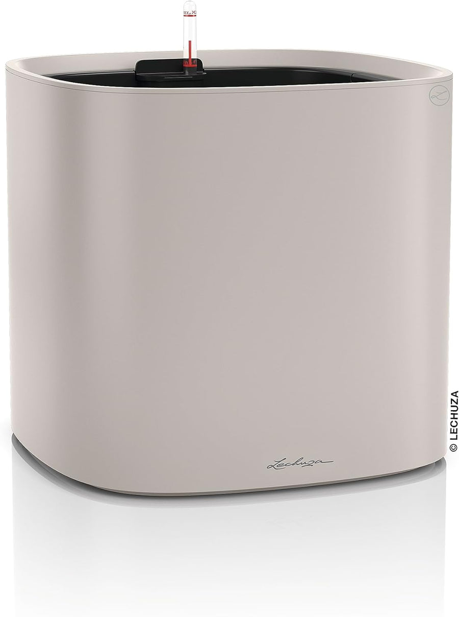 LECHUZA CURSIVO Premium 30 hochwertiges Pflanzgefäss mit Erd-Bewässerungs-System, taupe hochglanz, 3