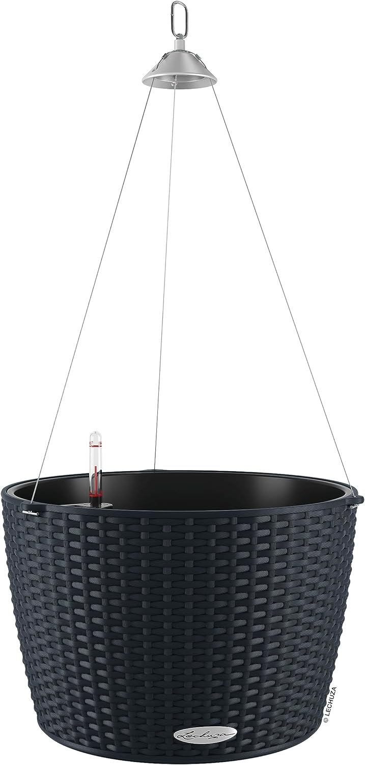 Lechuza CUBICO Premium 30, Anthrazit Metallic, Hochwertiger Kunststoff, Inkl. Bewässerungssystem, He