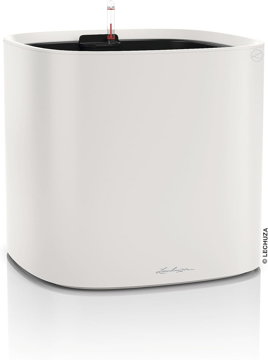 LECHUZA CUBICO Premium 22, Weiss Hochglanz, Hochwertiger Kunststoff, Inkl. Bewässerungssystem, Herau