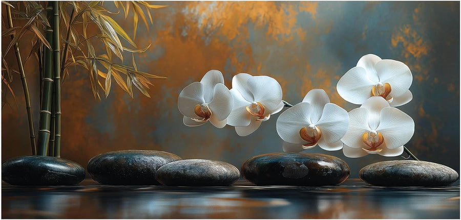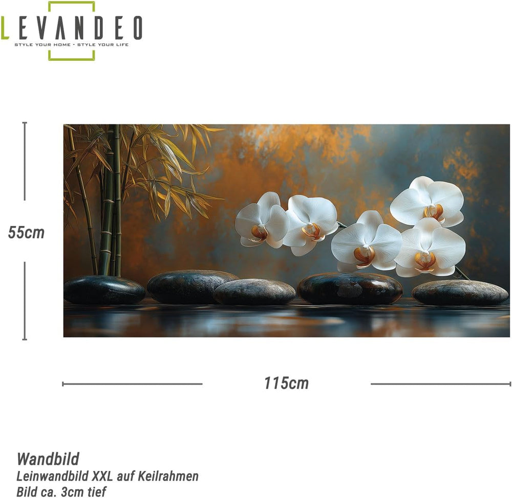 XXL Leinwand 115x55cm Wandbild Weisse Orchidee Bambus Bild Kunstdruck Spa Deko Wanddeko Leinwandbild
