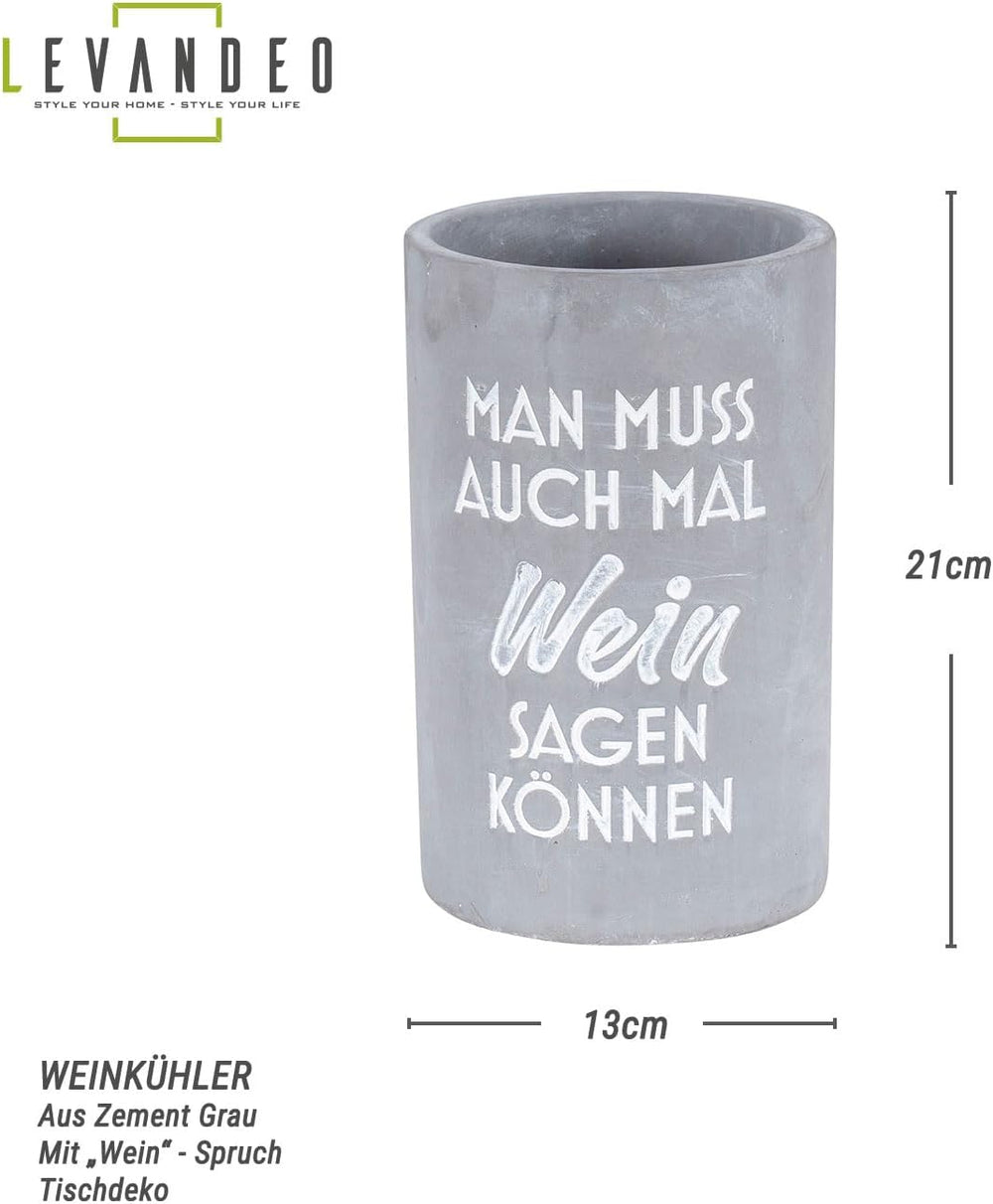 levandeo Weinkühler H21cm Beton Grau Flaschenkühler Spruch Wein Sektkühler Tischdeko Candlelight Din