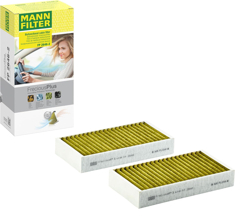 MANN-FILTER FP 2646-2 Innenraumfilter – FreciousPlus Biofunktionaler Pollenfilter (2er Set) – Für PK