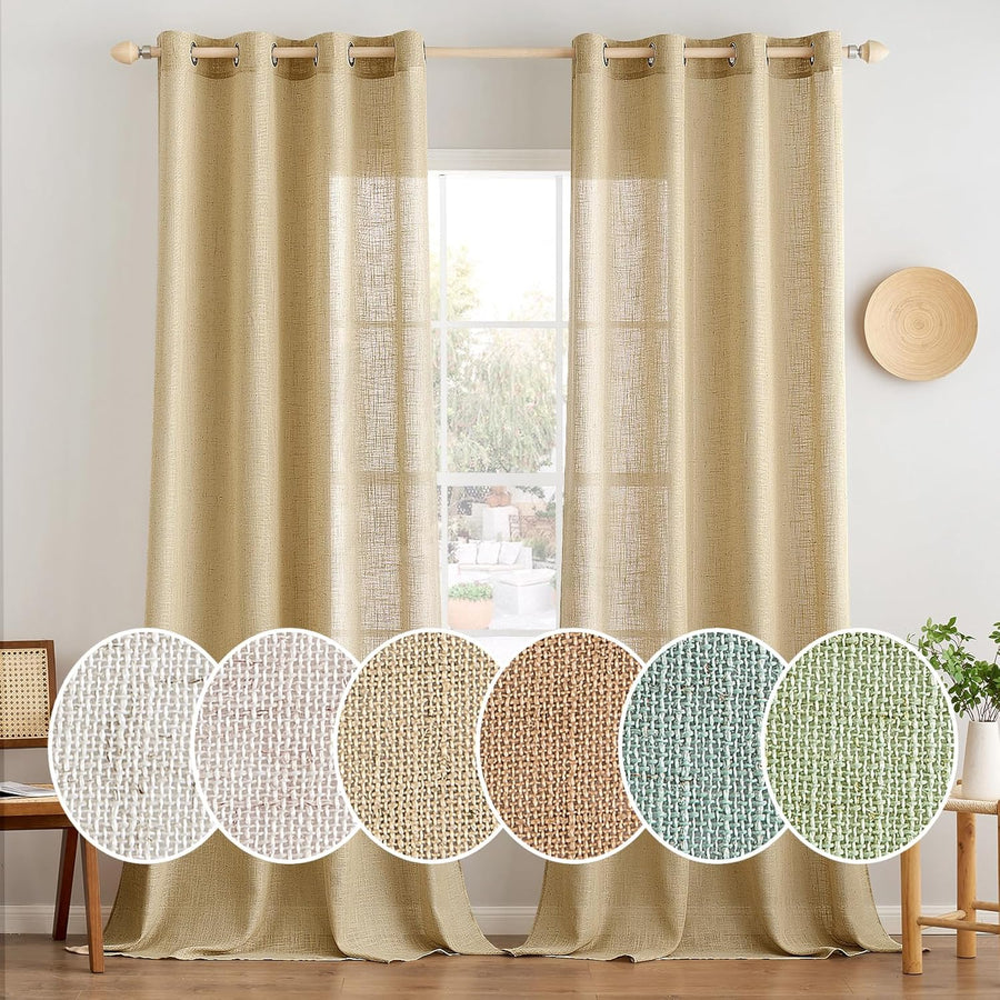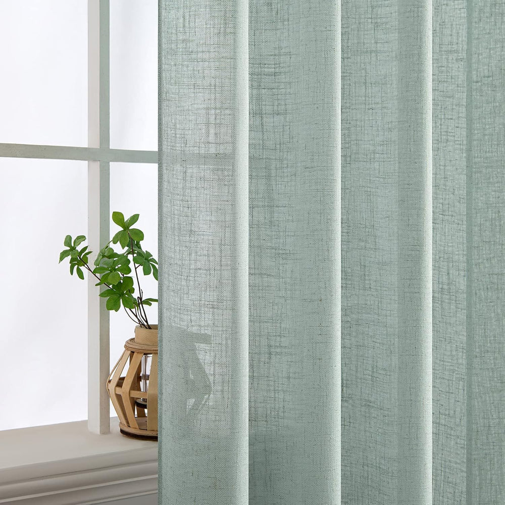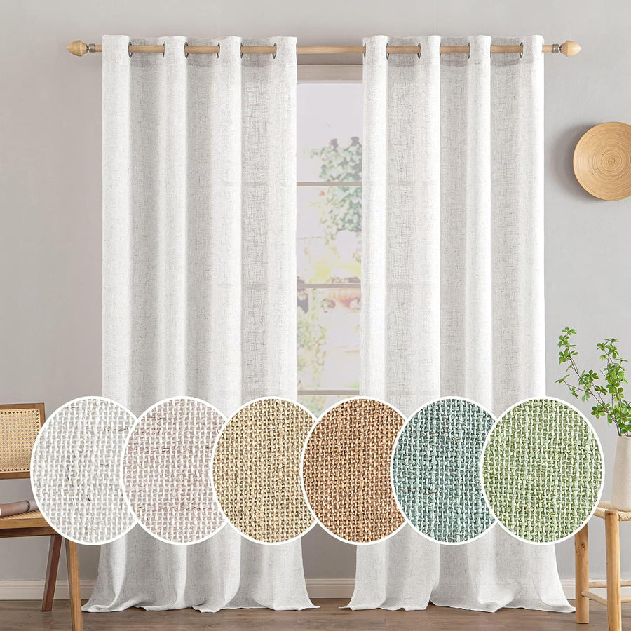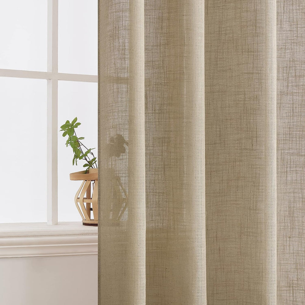 MIULEE Gardinen Vorhänge mit ösen Voile Vorhang Modern Leinenoptik Halbtransparent für Wohnzimmer Kü