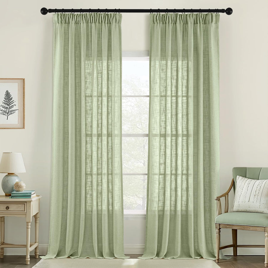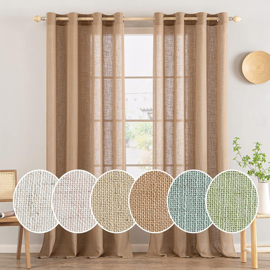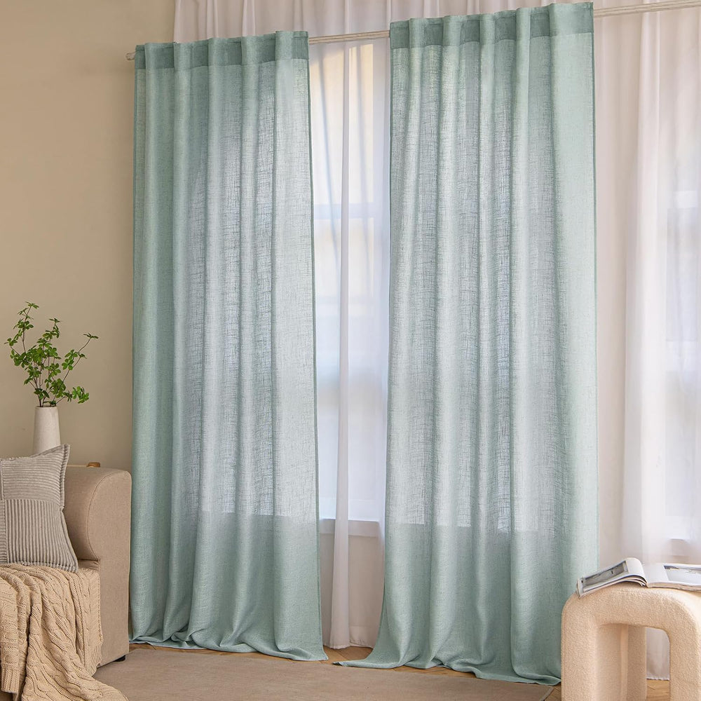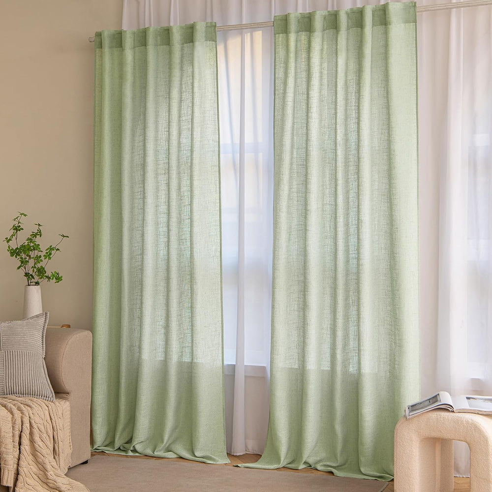 MIULEE Gardinen Vorhänge mit ösen Voile Vorhang Modern Leinenoptik Halbtransparent für Wohnzimmer Kü