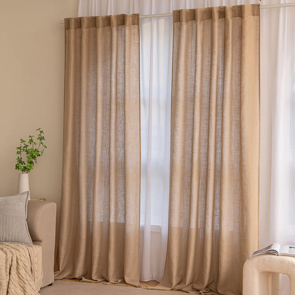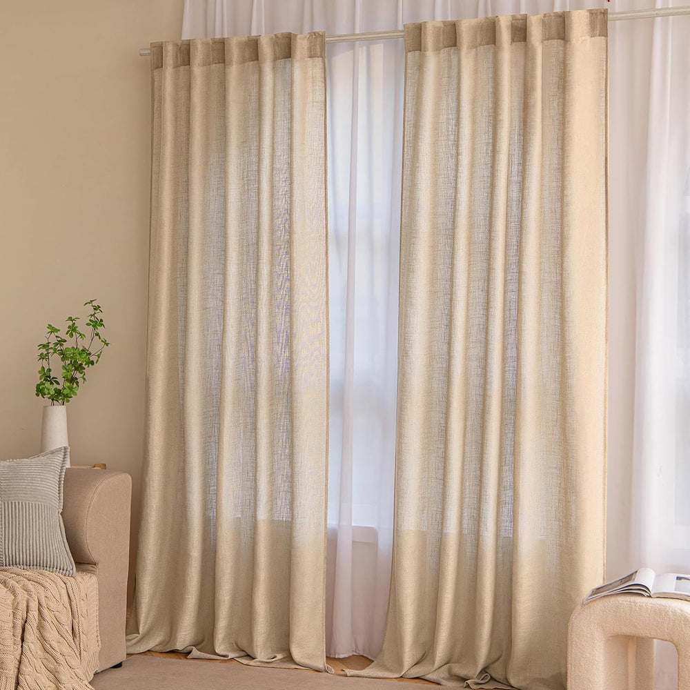 MIULEE Gardinen Vorhänge schlaufenschal Voile Vorhang Modern Leinenoptik Halbtransparent für Wohnzim