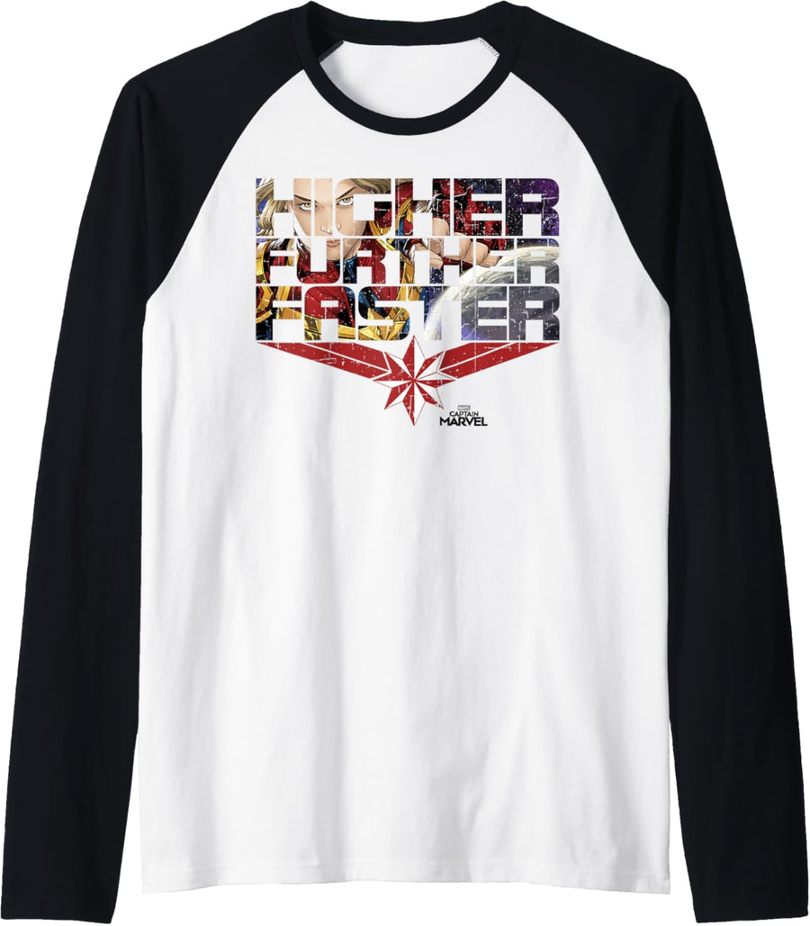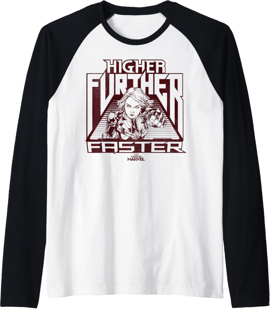 Captain Marvel Higher Further Faster Comic Fill Raglan
