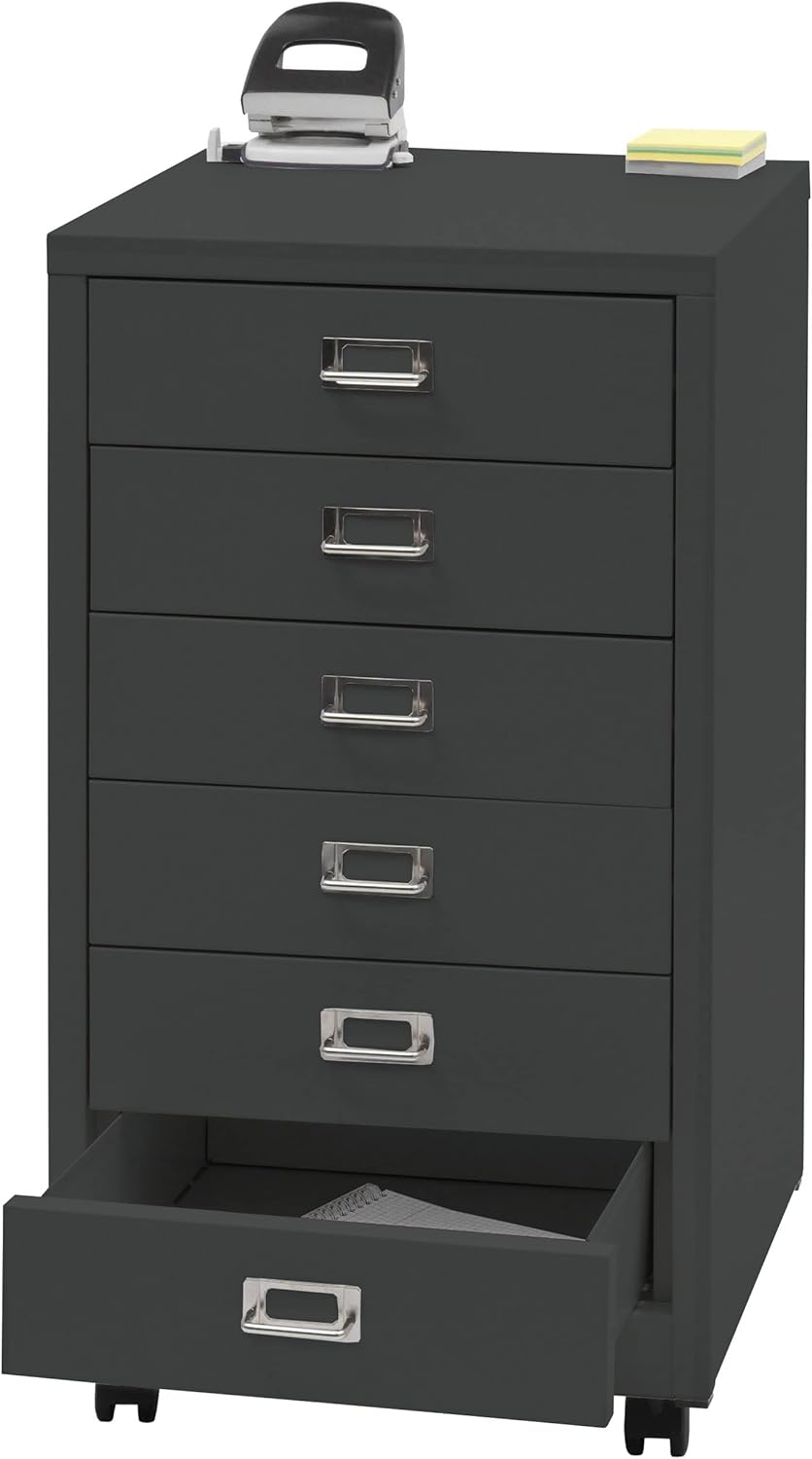 Mendler Rollcontainer Boston T851AM, Schubladenschrank Stahlschrank, 69x28x41cm 6 Schubladen - dunke