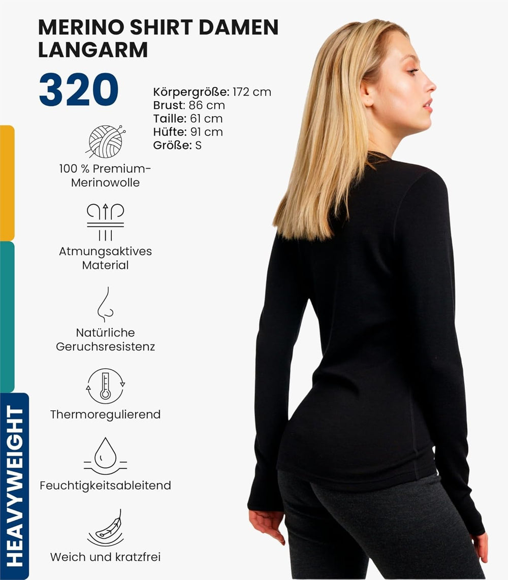 Merino.tech Merino Shirt Damen Langarm - Premium 100% Merino Unterwäsche Damen Leichte, Mittel, Schw
