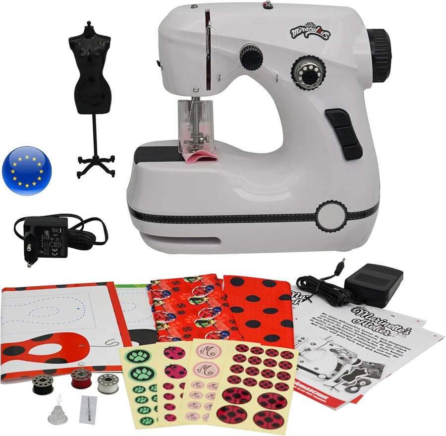 Miraculous Ladybug, Marinette Mini-Nähmaschine – für Kinder, doppelte Geschwindigkeit, tragbar, mit