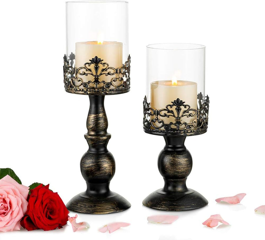NUPTIO Säulenkerzenhalter mit Glas, 2er Set Hurricane-Kerzenhalter aus Gold Moderne Wohnkultur Gesch