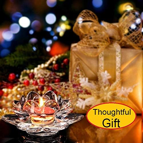 Nuptio Kristall Lotus Kerzenhalter 2 Stück Teelichthalter für 4.5cm Durchmesser Stumpenkerzen Glas V