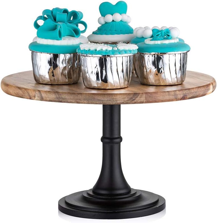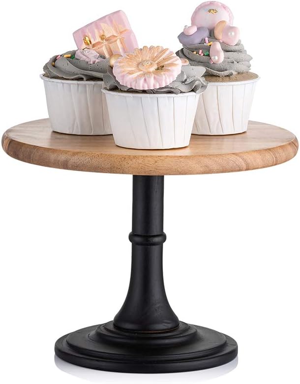 NUPTIO Rustikaler Tortenständer Hochzeit: 25cm Durchmesser Holz Tortenständer Schwarz, Dessertteller