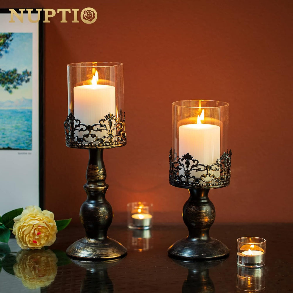 NUPTIO Kerzenständer Stumpenkerzen Schwarz Kerzenhalter: Set mit 2 Vintage Deko Gothic Halloween Wei