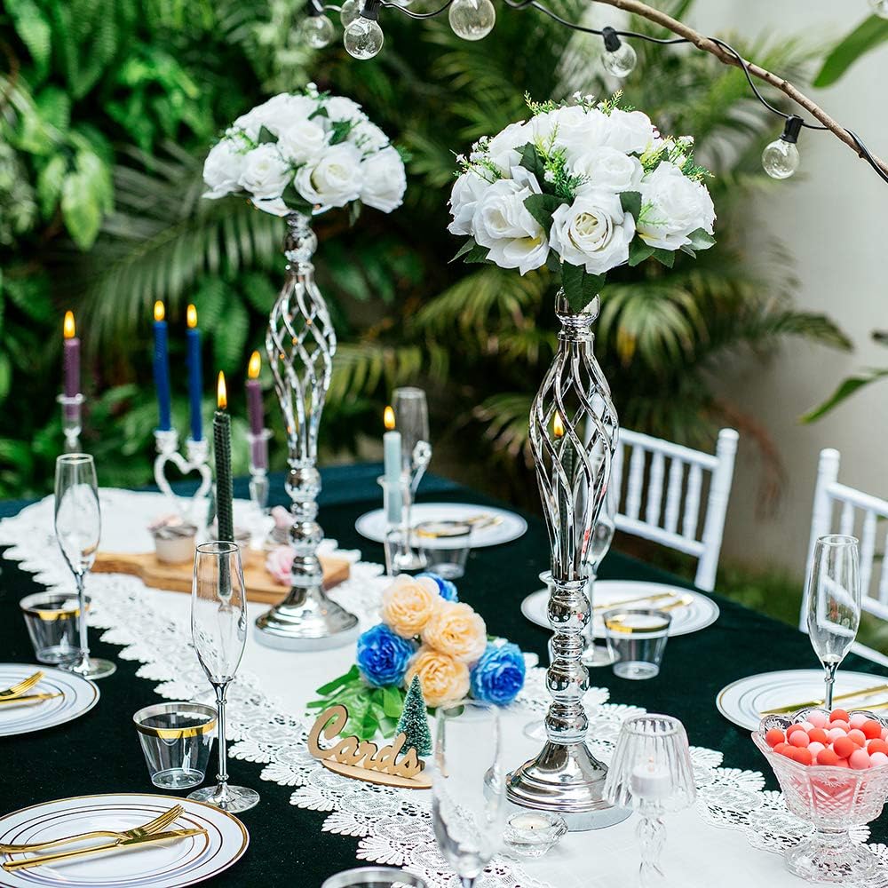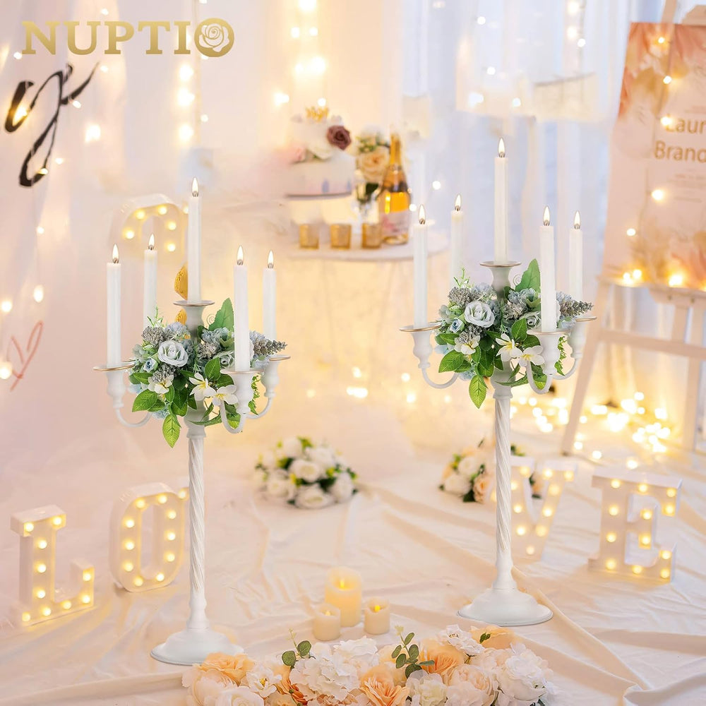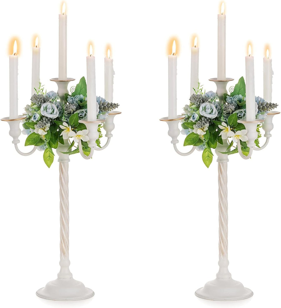 Nuptio Kerzenleuchter 5 Armig Weiss: 53cm Satz von 2 Vintage-Kandelaber für Tafelaufsatz Metall Flor