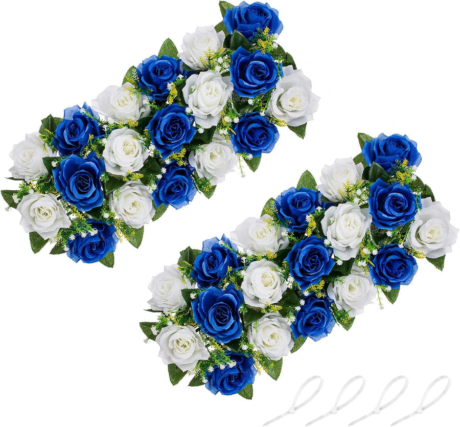 NUPTIO Kunstblumen Mittelstücke für Tische 2 Stück Königsblaue Blumen 50cm Lang Gefälschte Rosen Arr