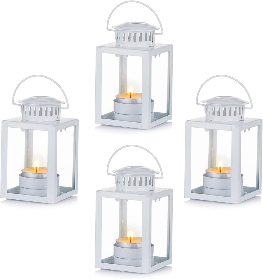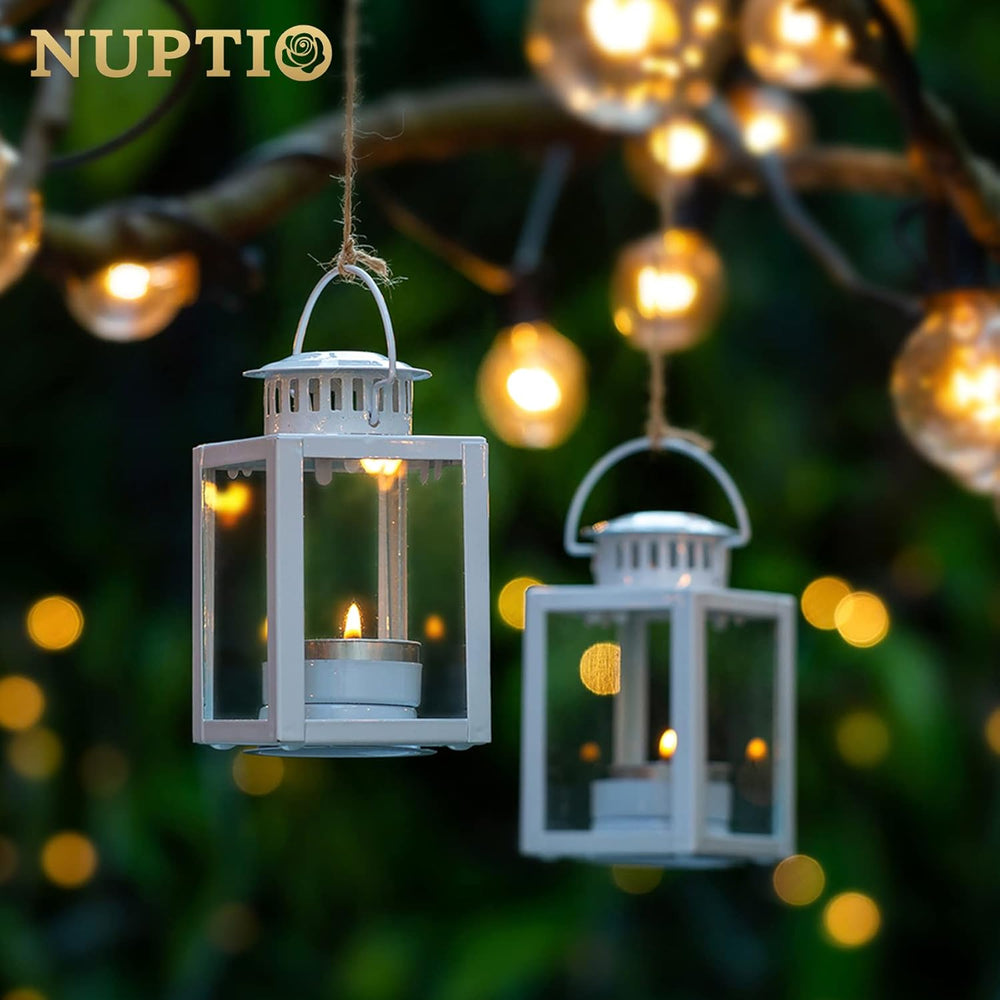 NUPTIO Laternen Dekorativ, 4 Stück Kerzenlaternen Indoor Teelicht Kerzenhalter, Weiss Hängende Garte