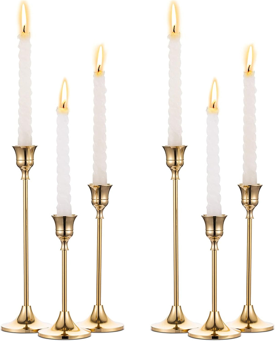 Nuptio Messing Kerzenständer Gold Kerzenhalter 6 Stück Stabkerzen Vintage Kerzen Stabkerze Metall St